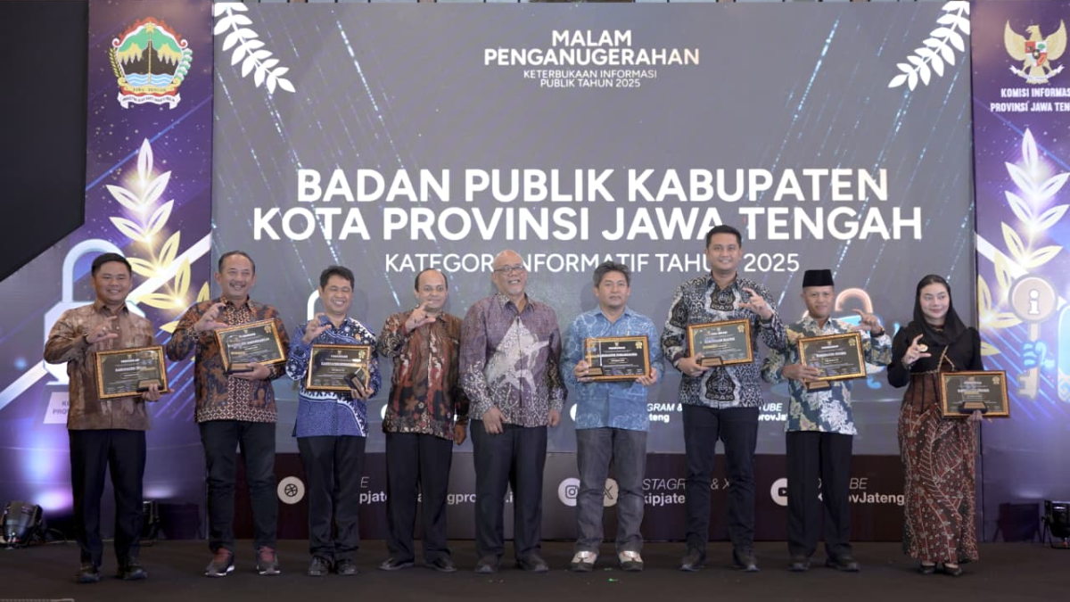 SEMARANG, korantegal.com- Pemerintah Kabupaten Tegal kembali menorehkan prestasi membanggakan dengan meraih predikat Informatif pada ajang Malam Penganugerahan Keterbukaan Informasi Publik (KIP Award) tingkat Provinsi Jawa Tengah tahun 2025. Kegiatan tersbut diselenggarakan oleh Komisi Informasi Provinsi Jawa Tengah di Hotel Patrajasa Semarang, Selasa (16/12/2025).