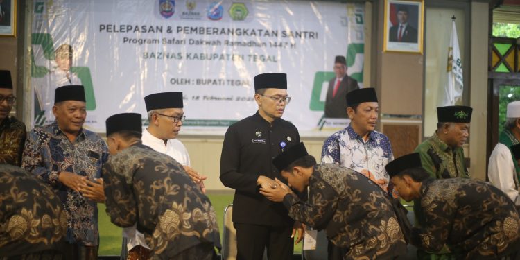 SLAWI, korantegal.com — Sekretaris Daerah Kabupaten Tegal Amir Makhmud secara resmi melepas 127 santri peserta Program Advokasi Dakwah Safari Ramadhan 1447 H yang diselenggarakan Baznas Kabupaten Tegal di Pendopo Amangkurat, Rabu (18/02/2026). Pelepasan ini menegaskan dukungan Pemerintah Kabupaten Tegal terhadap sinergi dakwah dan pemberdayaan umat selama bulan suci Ramadhan.