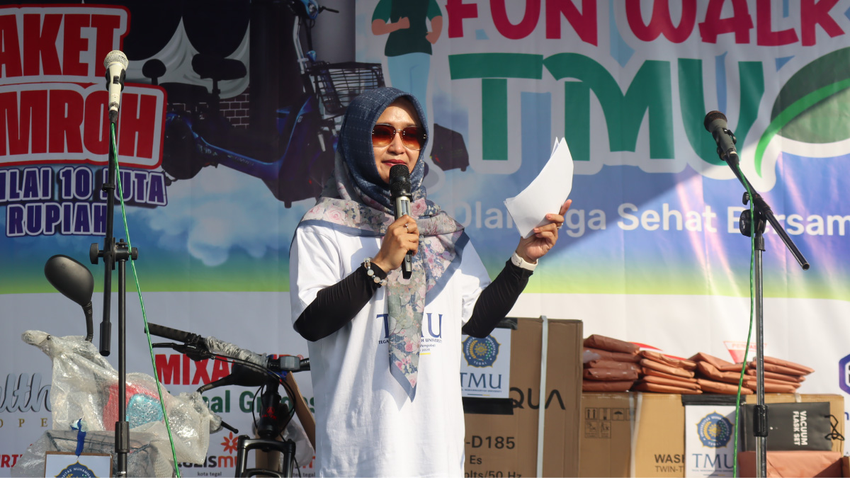 Korantegal.com, Tegal – Kampus Tegal Muhammadiyah University (TMU) mendapat apresiasi dari Wakil Wali Kota Tegal, Hj. Tazkiyyatul Muthmainnah, SKM, M.Kes, atas komitmennya dalam memudahkan akses pendidikan tinggi bagi masyarakat. Hal ini disampaikan saat membuka acara Fun Walk dalam rangka Gebyar Milad ke-1 Tegal Muhammadiyah University. Salah satu wujud nyata dukungan TMU adalah melalui penyediaan program beasiswa yang melimpah dan beragam.
