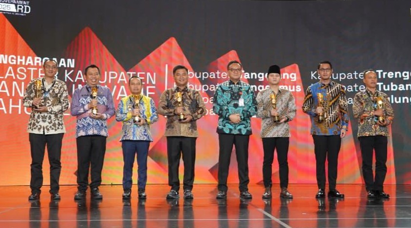JAKARTA, korantegal.com – Pemkab Tegal kembali menorehkan catatan prestasi yang membanggakan pada ajang Innovative Government Award atau IGA Tahun 2025 yang diselenggarakan Kementerian Dalam Negeri (Kemendagri) melalui Badan Strategi Kebijakan Dalam Negeri (BSKDN). Dengan indeks inovasi daerah sebesar 77,59 atau peringkat ke-33 untuk kategori kabupaten di Indonesia, Kabupaten Tegal kembali meraih predikat sangat inovatif.