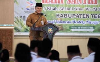 Slawi – Upacara bendera menjadi puncak peringatan Hari Santri Nasional (HSN) 2025 Kabupaten Tegal pada Rabu (22/10/2025). Dalam upacara ini, para santri kembali diingatkan tentang Resolusi Jihad atau resolusi NU tentang jihad fisabilillah untuk mempertahankan dan menegakkan agama Islam serta menjaga kedaulatan NKRI yang merdeka.