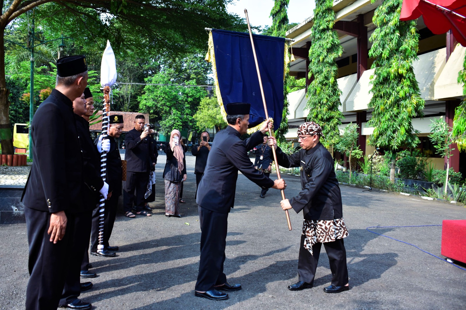 Slawi –  Pj Bupati Tegal Agustyarsyah menyerahkan tombak kyai plered dan pataka pakta integritas yang merupakan lambang tekad pejabat pemerintahan daerah Kabupaten Tegal kepada keluarga Kalisoka. Prosesi upacara adat penyerahan pataka ini berlangsung di halaman Kantor Sekretariat Daerah Kabupaten Tegal, Rabu (15/05/2024) pagi.