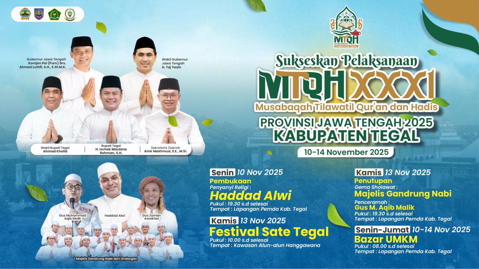 Slawi – Penyanyi musik religi Haddad Alwi akan meramaikan acara pembukaan Musabaqah Tilawatil Qur’an dan Hadis (MTQH) XXXI Tingkat Jawa Tengah Tahun 2025 di lapangan Kantor Pemerintah Kabupaten Tegal pada Senin (10/11/2025) malam mendatang. Hal ini terungkap saat berlangsung rapat final checking pelaksanaan MTQH Jawa Tengah di ruang rapat Bupati Tegal, Rabu (05/11/2025).